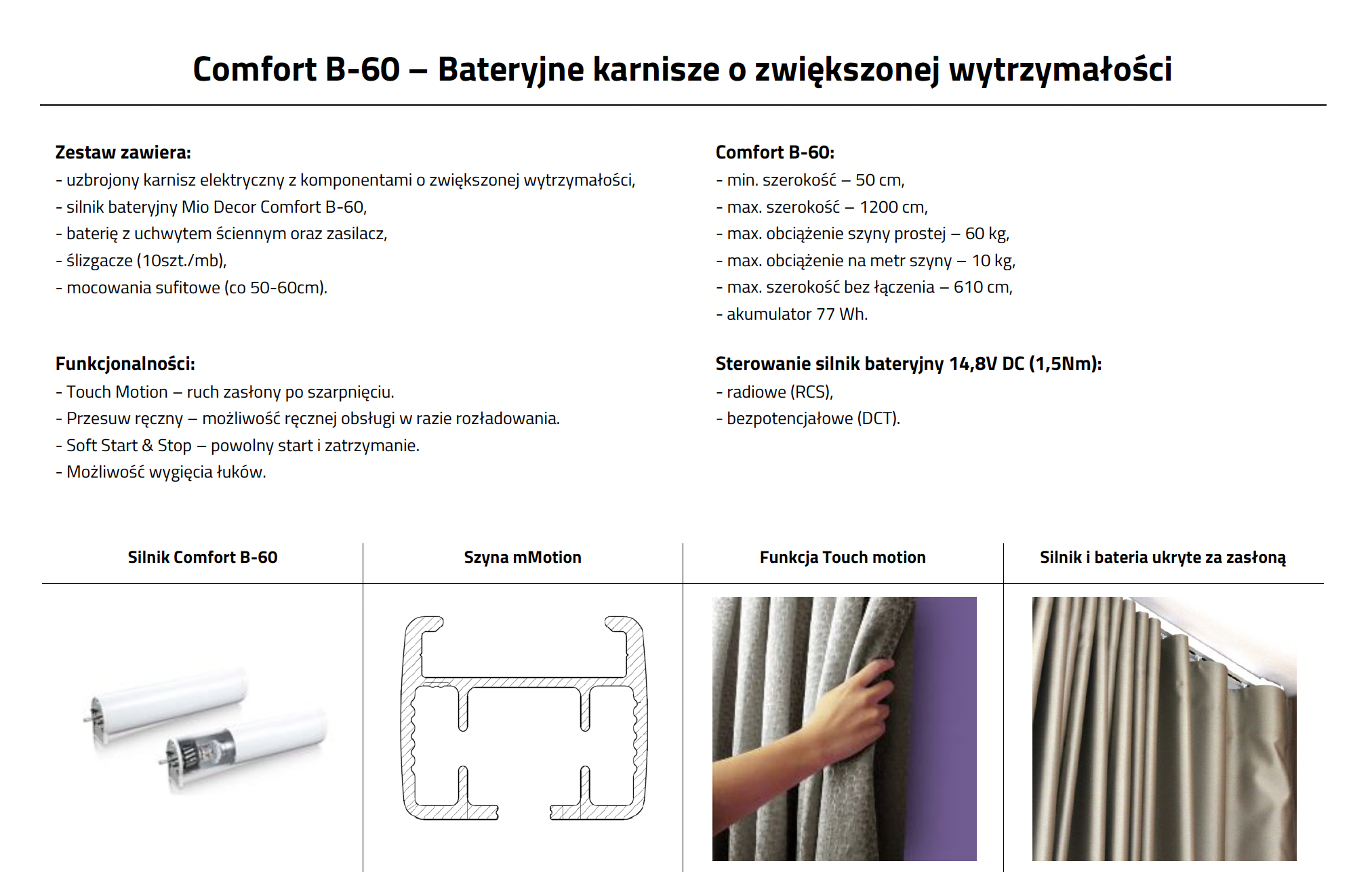 Bateryjny karnisz Comfort B-60 o zwiększonej wytrzymałości