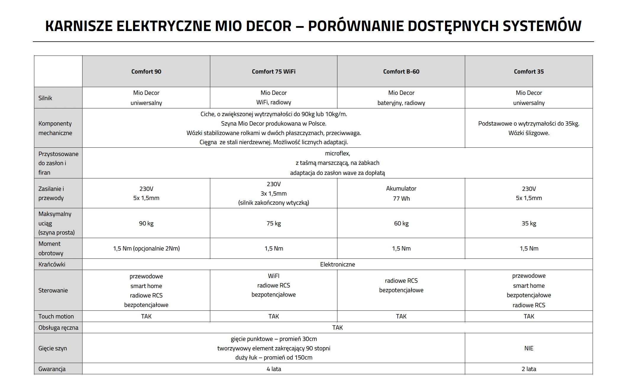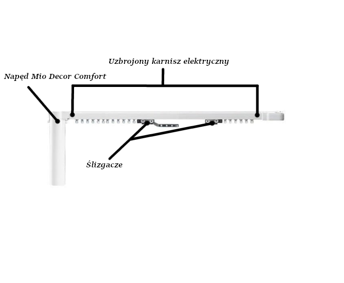 - uzbrojony karnisz elektryczny o wybranej długości w kolorze białym lub czarnym,