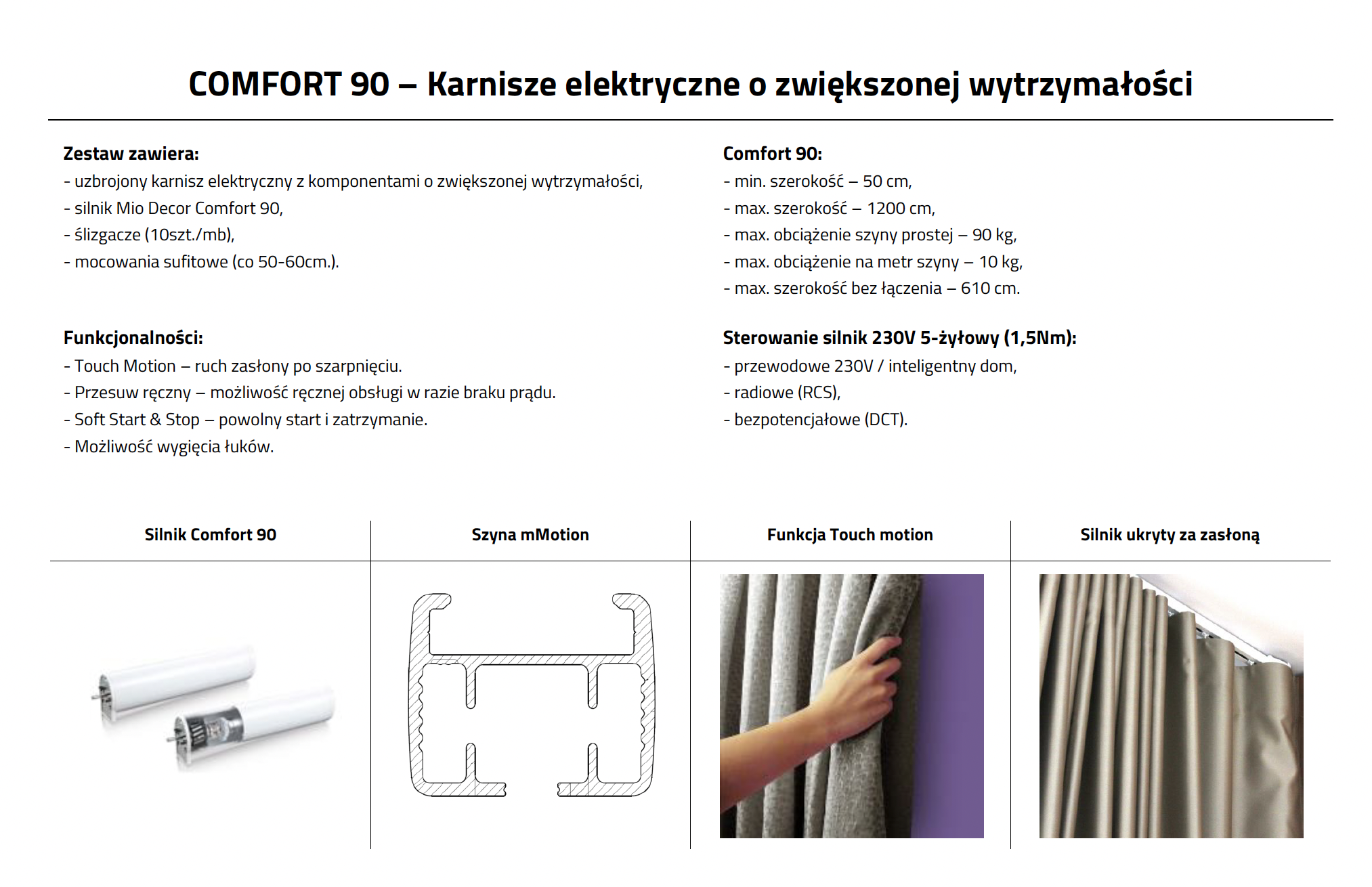 Karnisz elektryczny Comfort 90 Wave o zwiększonej wytrzymałości